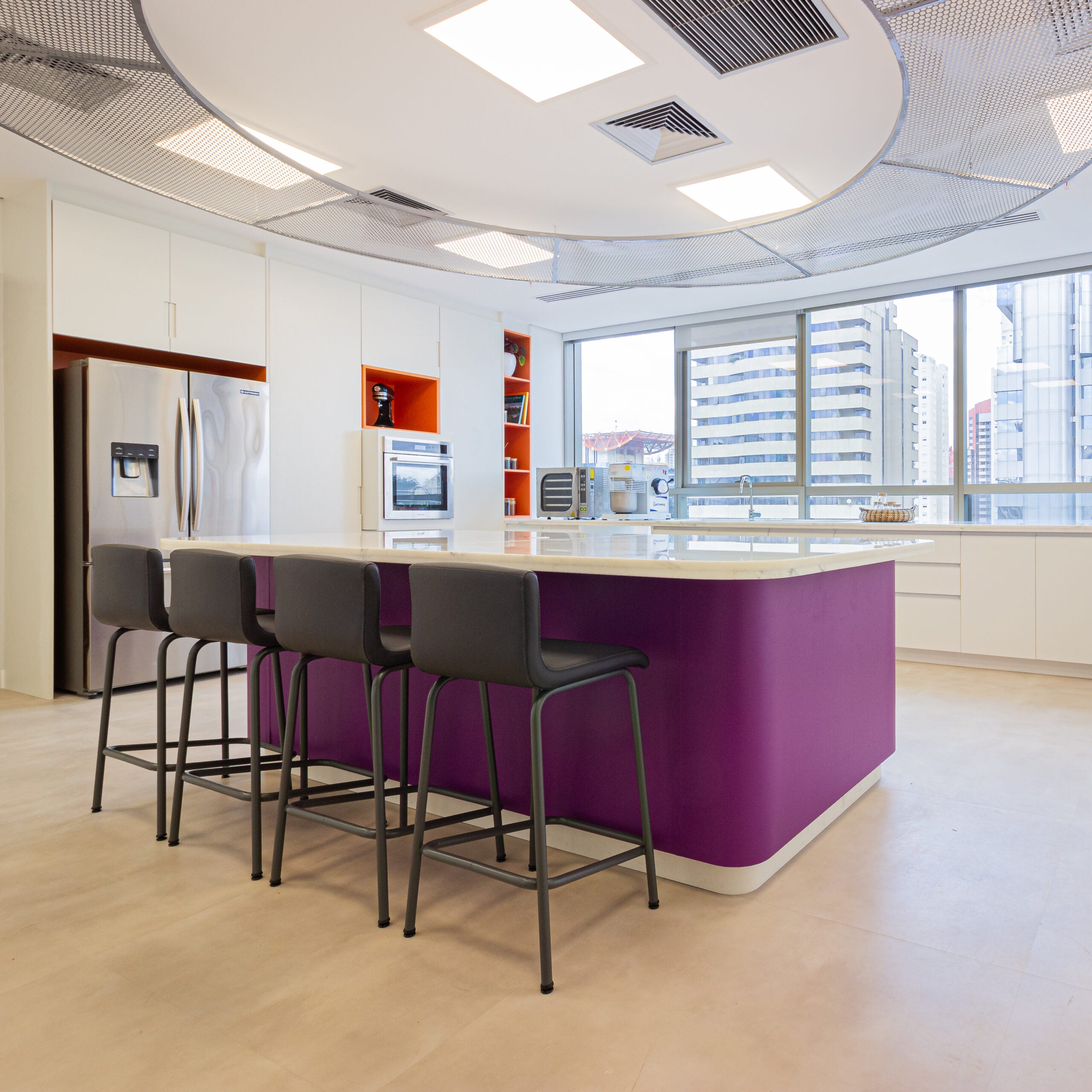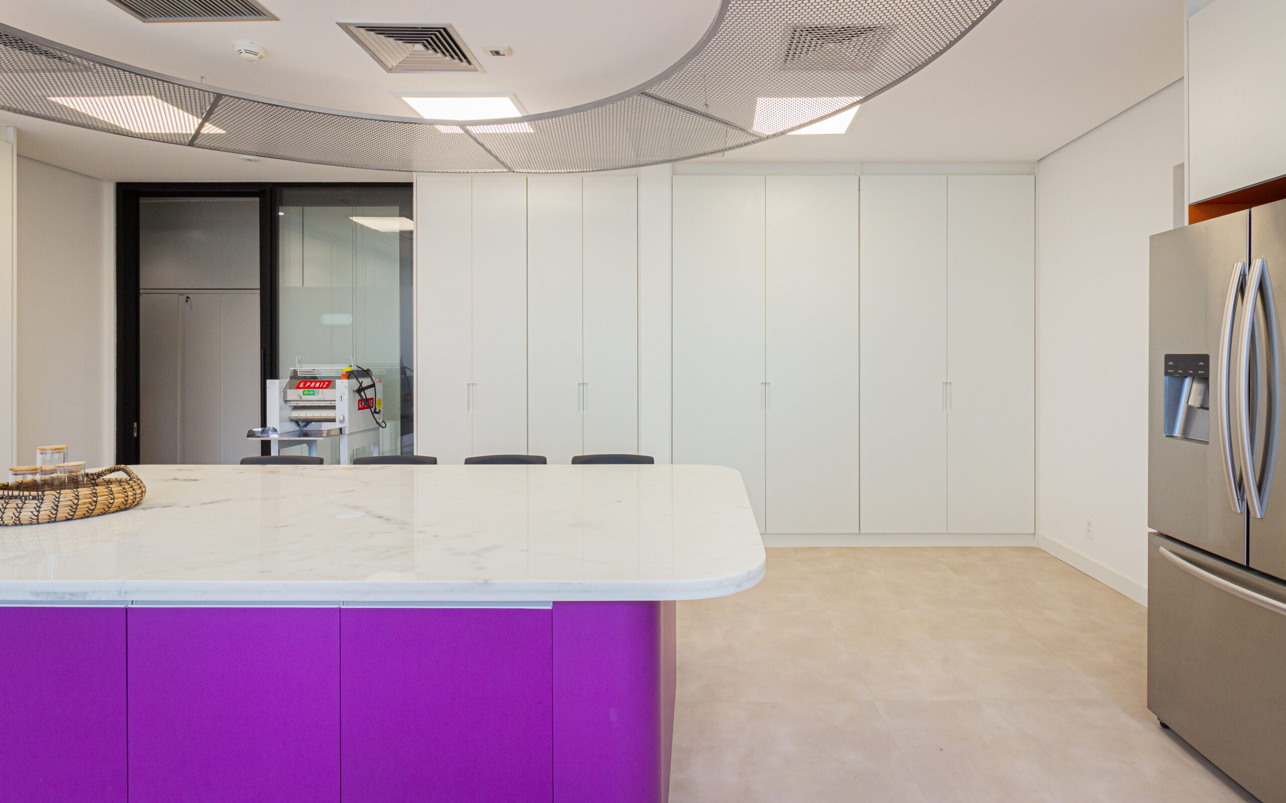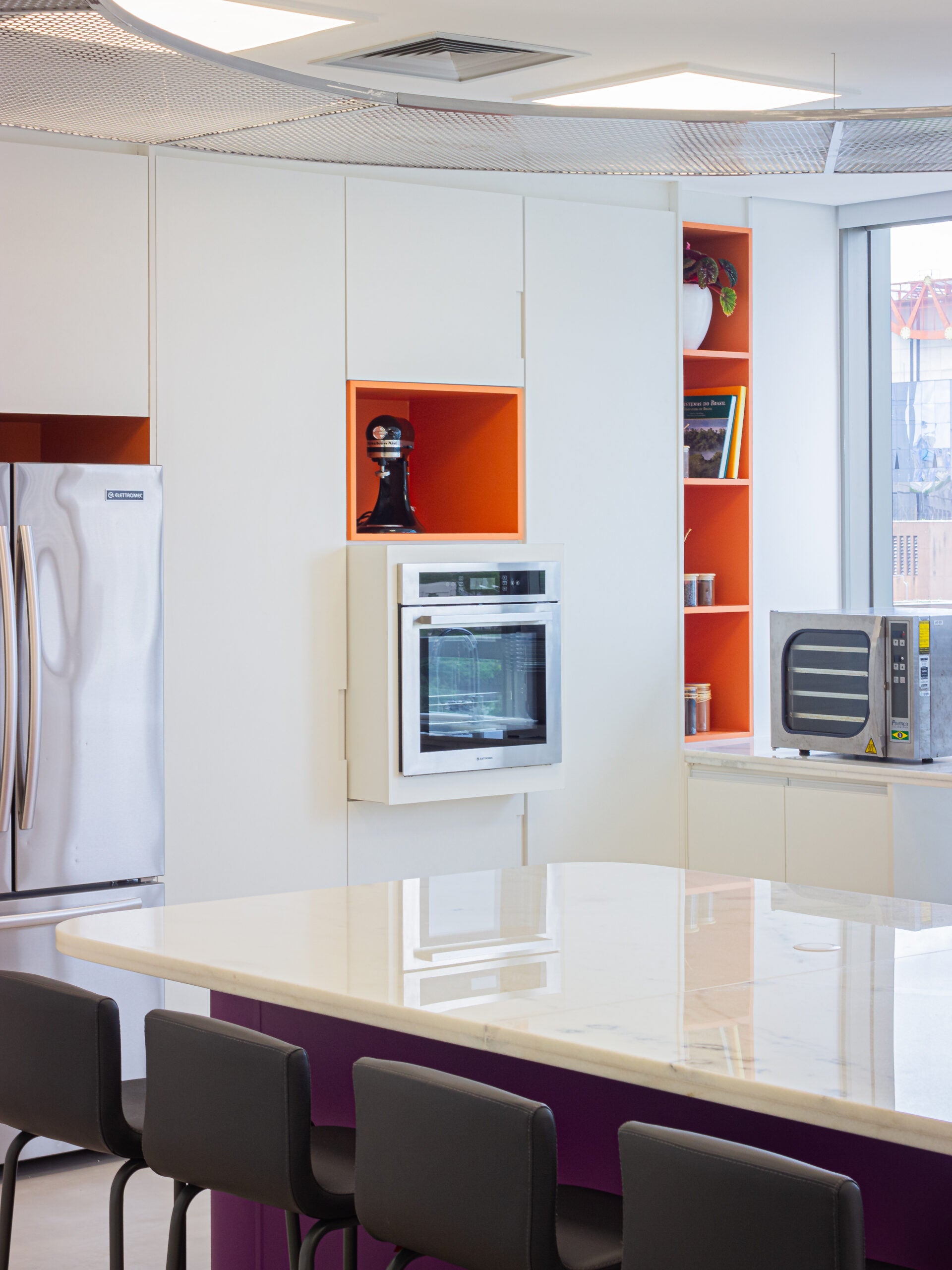 O projeto da sala de experimentação foi concebido para ir além de uma cozinha técnica, integrando funcionalidade, estética e identidade de marca. Cada escolha atendeu rigorosamente às exigências de testes com matérias-primas alimentícias, sem abrir mão da fluidez do espaço.